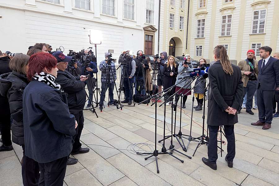 První v pořadí bylo přijetí Ivana Bartoše, který se po jednání sešel na nádvoří hradu s novináři, které krátce informoval o obsahu jednání. Ke svému odvolání Ivan Bartoš uvedl, že prezident republiky návrh premiéra akceptuje. Pokud jde o zbývající ministry, řekl Ivan Bartoš, že se oba, ministr zahraničí Jan Lipavský a ministr pro legislativu Michal Šalomoun, jednoznačně vyjádřili, že v případě výsledku pirátského hlasování pro odchod z vlády, podají oba demisi do rukou předsedy vlády.