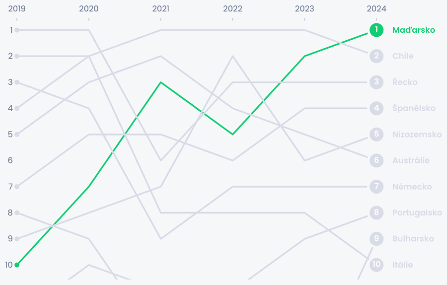 Maďarsko se vyjímá nejen mezi státy Visegrádské skupiny, ale i na světové scéně díky vysokému podílu solární energie na výrobě elektřiny. Zatímco v roce 2019 tvořila solární energie jen 4 procenta výroby, do roku 2024 podíl vzrostl téměř na 25 procent. Země se tak posunula z regionální špičky mezi přední světové lídry.