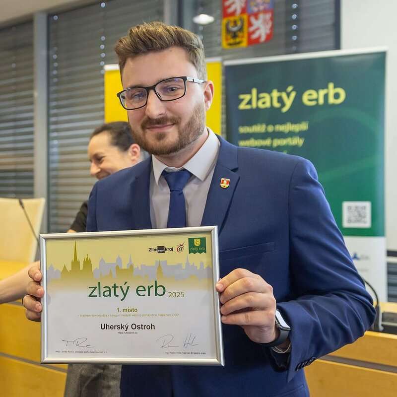 Ocenění zástupcům obcí, které letos uspěly v krajském kole soutěže Zlatý erb o nejlepší webové stránky, předal v pátek 25. dubna na krajském úřadě hejtman Zlínského kraje Radim Holiš společně s ředitelem soutěže Martinem Lukášem. V letošním ročníku soutěže hodnotila odborná porota weby obcí, které nejsou obcemi s rozšířenou působností (ORP). Z vítězství ve Zlínském kraji se raduje Uherský Ostroh, na druhé příčce se umístil Slavičín, třetí místo obsadilo Slopné.