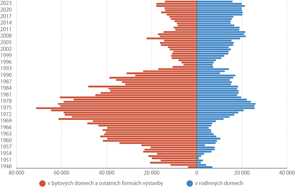 V roce 2024 bylo v Česku dokončeno 30 267 bytů, což odpovídá meziročnímu poklesu o pětinu. Českému stavebnictví loni chyběla zásoba rozestavěných bytů z minulých let a také stavební a finanční kapacity. Podařilo se však nastartovat zahajování nové výstavby.