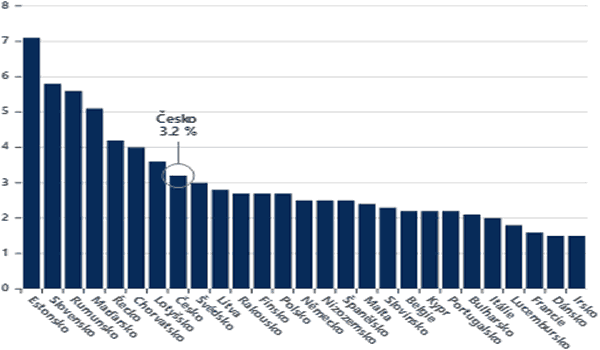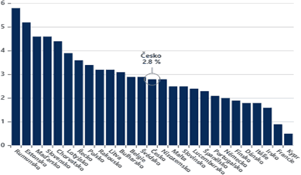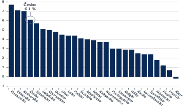 Inflačním ohniskem zůstává východní Evropa – v Rumunsku se spotřebitelské ceny zvýšily o 5,4 %, na Slovensku pak o 4,6 %. Z velkých ekonomik vykazuje trvale nejnižší inflační tlaky Francie, kde ceny vzrostly pouze o 0,9 %.