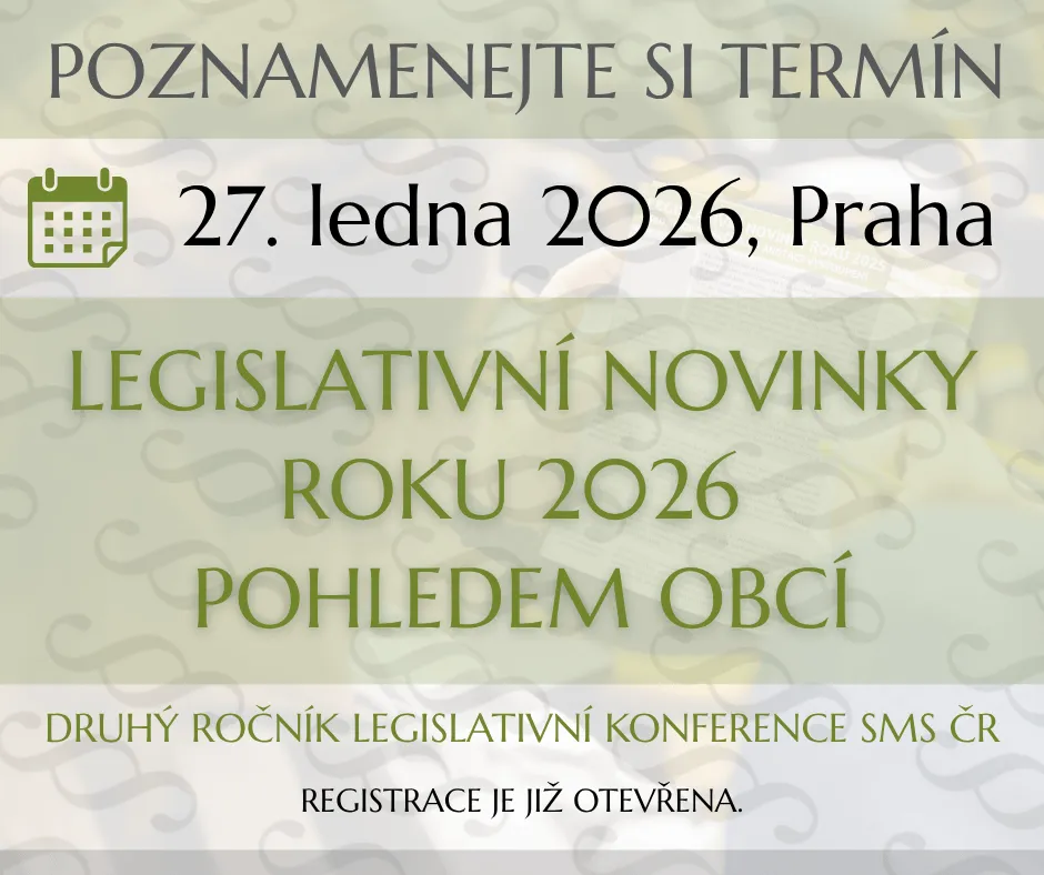 Po letošním úspěšném prvním ročníku chystáme pro zástupce samospráv další celodenní setkání věnované legislativním změnám, díky kterému získají dokonalý přehled o všem podstatném. Konference Legislativní novinky roku 2026 pohledem obcí a měst se uskuteční 27. ledna 2026 v Praze.