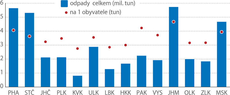 Odpady nejméně produkují v Libereckém a Karlovarském kraji